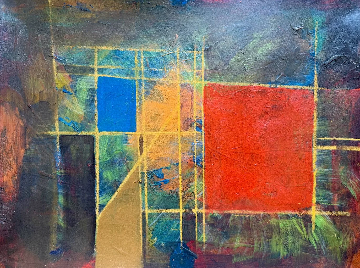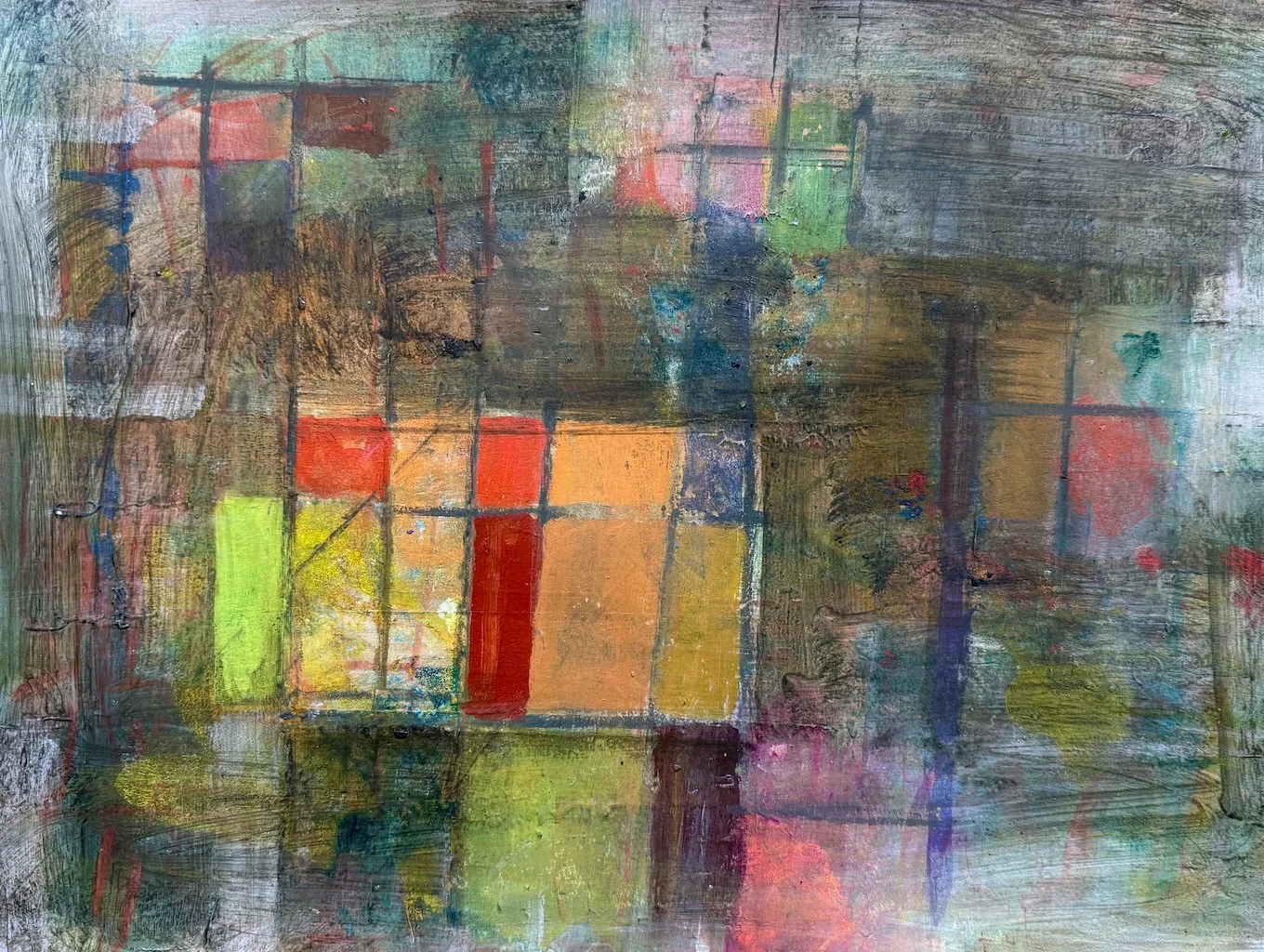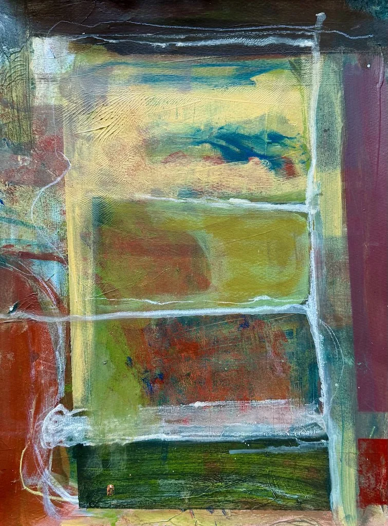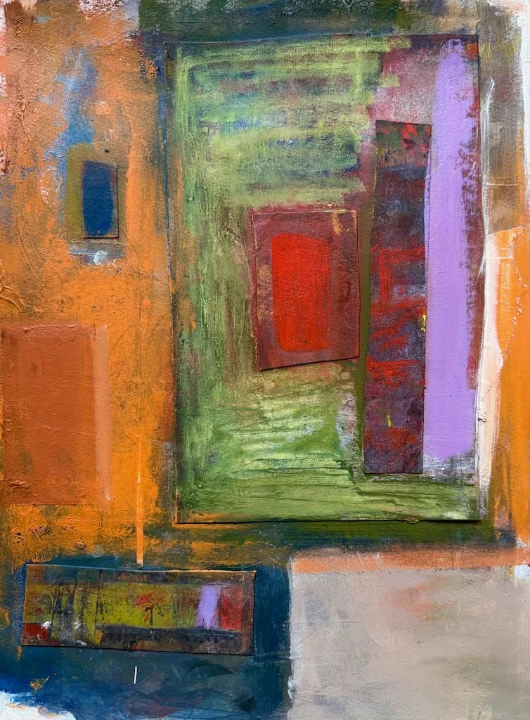 Chromatic Structure, 16 x 12 in Mixed Media (collage & acrylic on paper) 2025