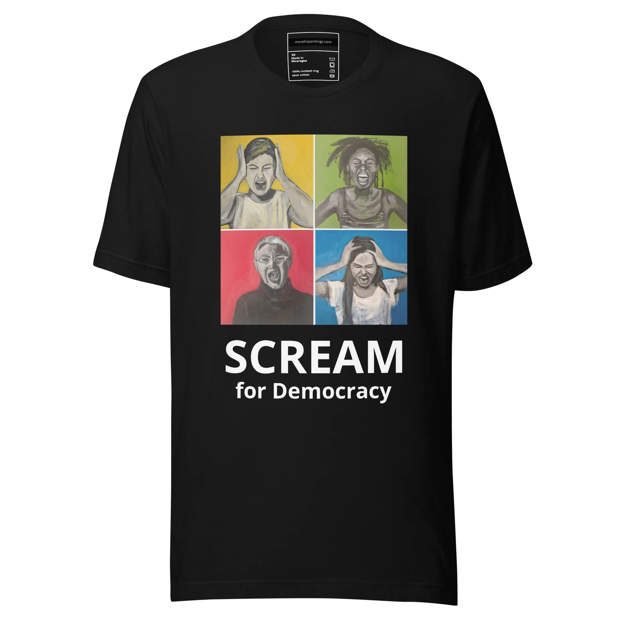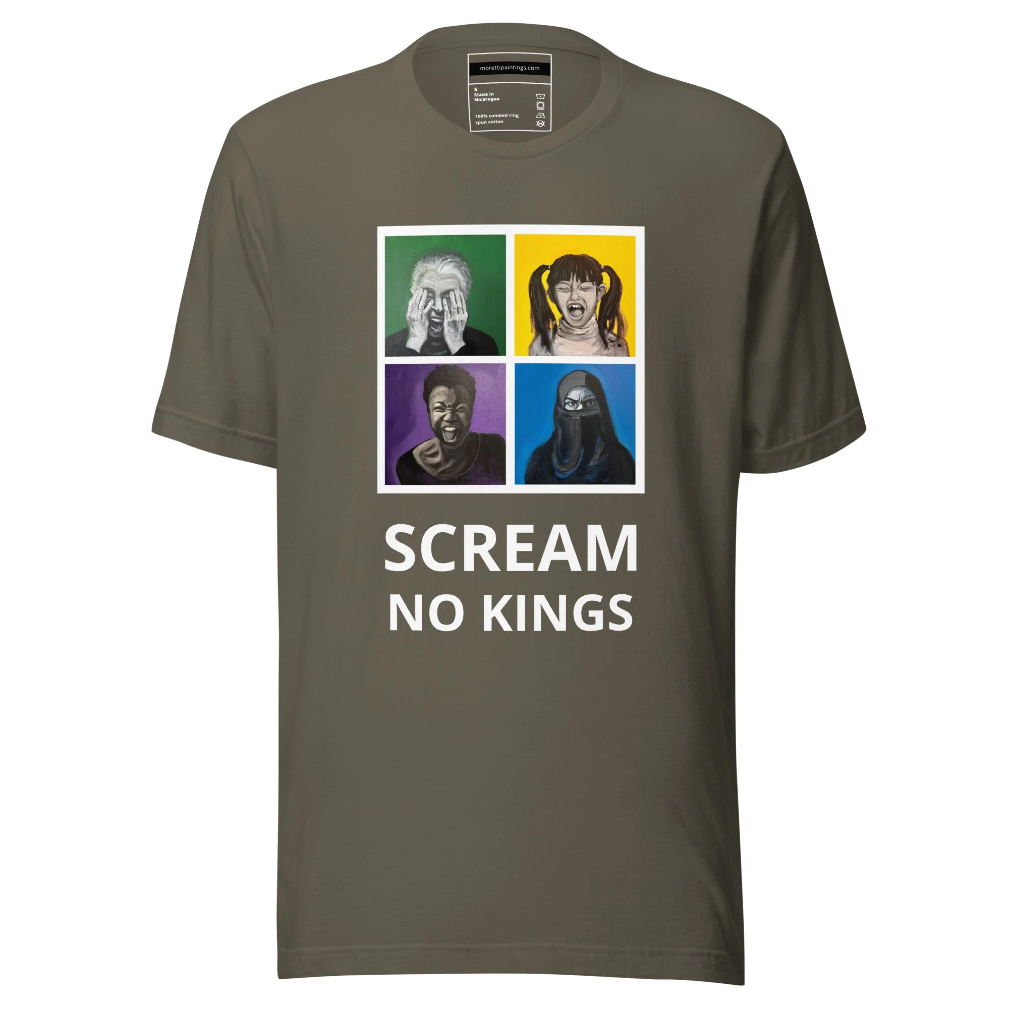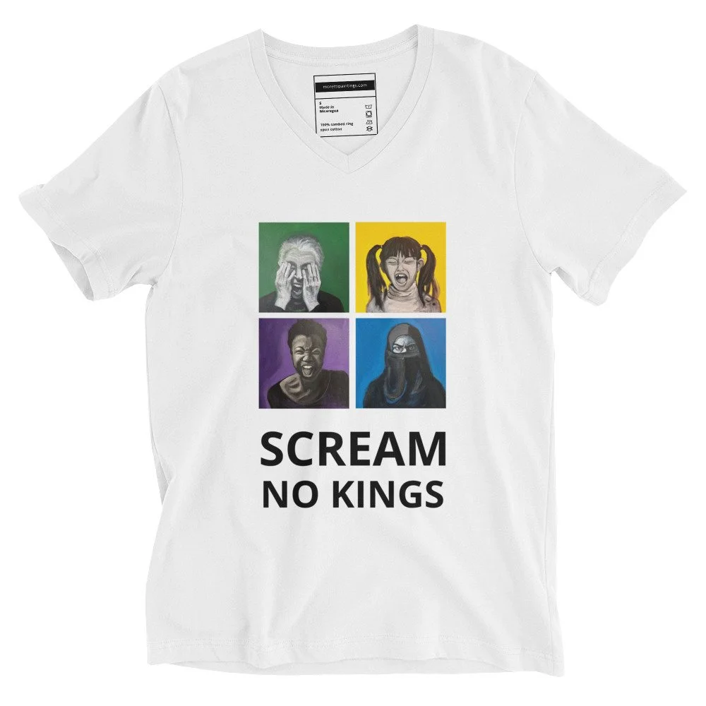 Shop SCREAM Raise your voice and spread the word. SCREAM for Democracy & Justice. SCREAM Merch SCREAM for Democracy T-Shirt - 4 Color Choices from $15.50 View Options SCREAM for Democracy T-Shirt - White round neck from $15.50 Select Size XS S M L XL 2XL 3XL 4XL 5XL Add To Cart Added! SCREAM NO KINGS T-Shirt - White V-neck from $20.00 Select Size S M L XL 2XL Add To Cart Added! SCREAM NO KINGS T-Shirt - 4 Color Choices from $16.50 View Options