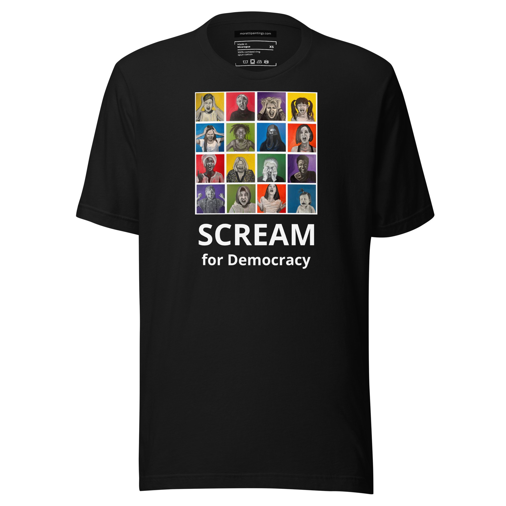 Your SCREAM t-shirt brings the full series together - all sixteen voices, unified as they’ve been exhibited in galleries in the Boston-area and Chicago. This Portrait of Collective Voices forms a diverse expression of emotion, strength, and shared humanity.